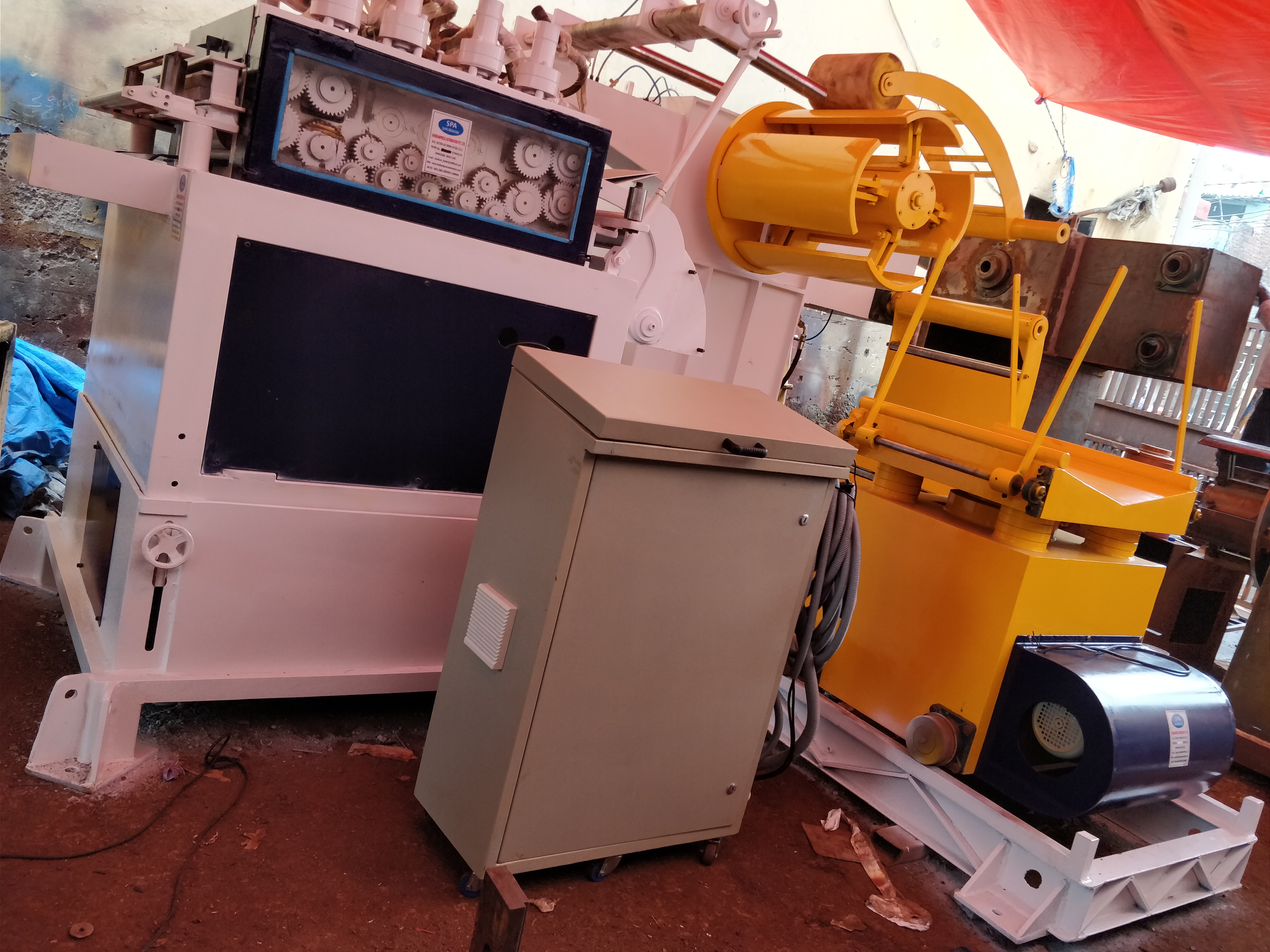 ShubhamPress Automation is a leading manufacturer of the GOS Decoiler Cum Straightener, a high-performance machine designed to streamline coil handling operations by combining decoiling and straightening in one efficient system. This machine is engineered to handle a wide range of materials, including steel and aluminum, ensuring precision in feeding and straightening for various industrial processes such as metal stamping, fabrication, and sheet metal processing.
